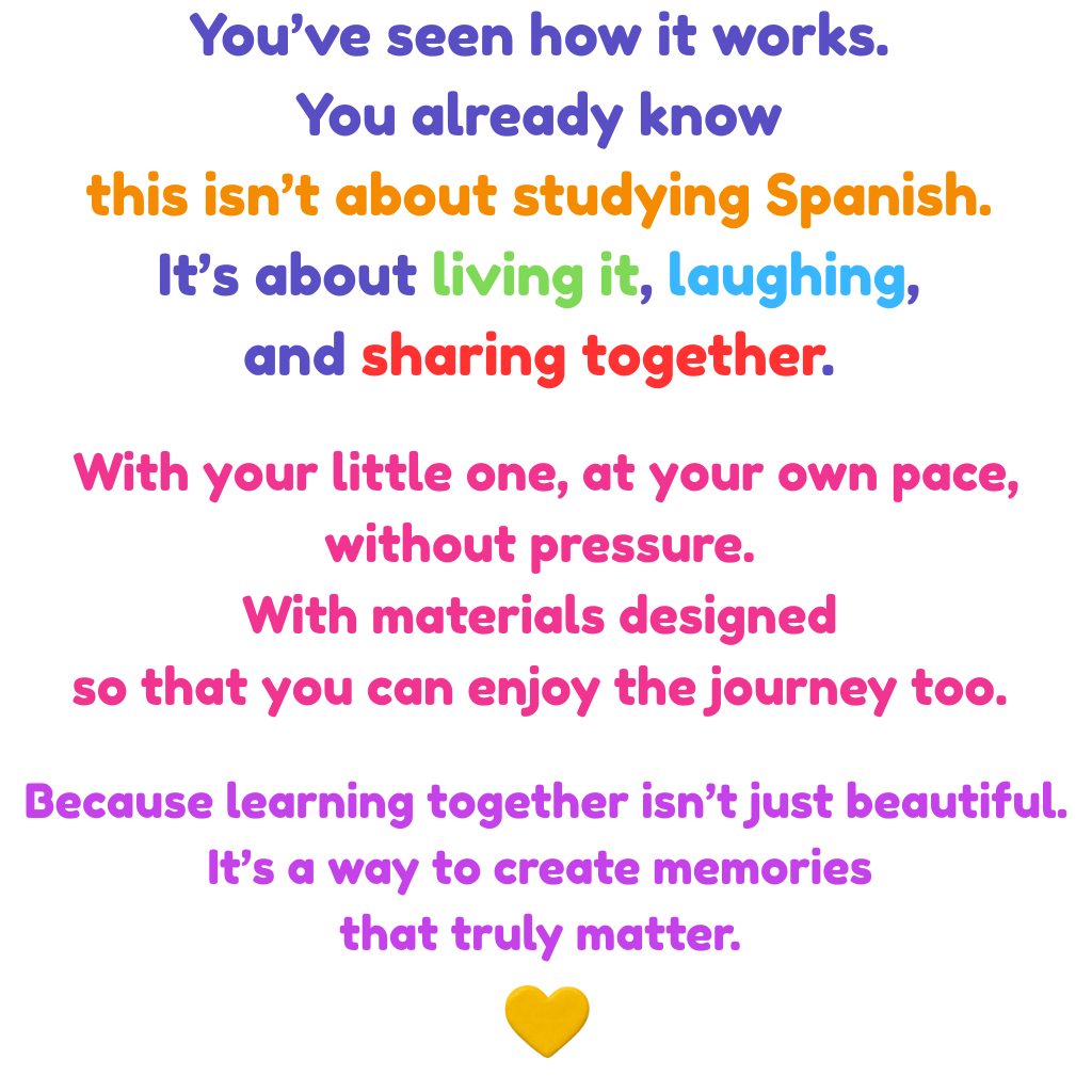 That’s great! TEO is the perfect complement — it brings the language to life beyond the classroom. Through play, stories, and real-life situations, your child gets to use Spanish in a fun, natural way, making it part of your everyday life as a family.
